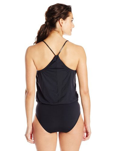 Vince Camuto Womens Black Collins Luxe Blouson One Piece Swimsuit Size 14