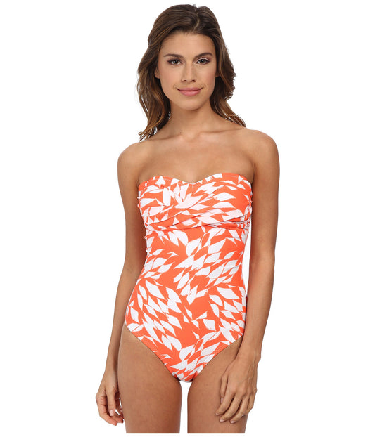 Vince Camuto Women's Navy Key West Style Pleated Bandeau One Piece Swimsuit Size 6